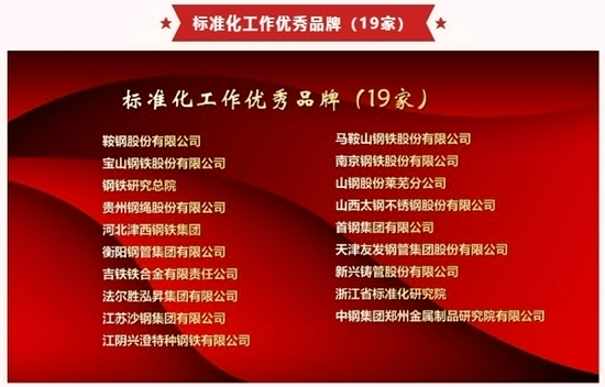 中鋼集團鄭州金屬制品研究院榮獲“標準化工作優秀品牌”獎