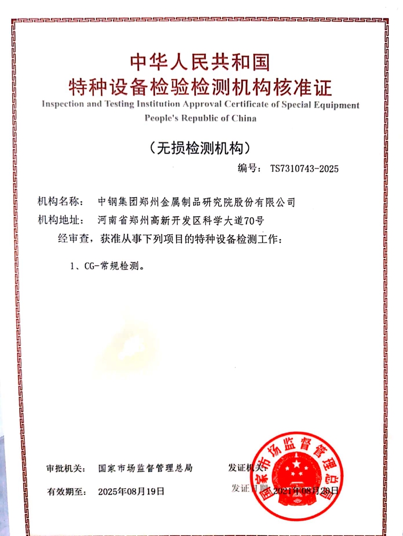 喜報!中鋼國檢獲特種設備檢驗檢測機構資質