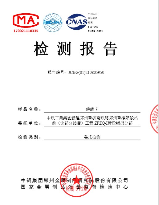 鋼筋絕緣卡檢測第三方檢測報告-中鋼國檢出具